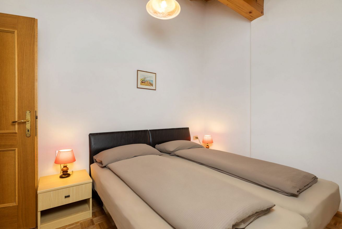 L'appartamento è composto da due camere da letto con letti separabili e un divano letto matrimoniale, un bagno con doccia e asciugacapelli, cucina con soggiorno (completa di elettrodomestici, stoviglie, biancheria da cucina) e divano letto, balcone e terrazzo. Tra i comfort: wi-fi, bollitore, lavastoviglie e TV-Sat con 6 canali Sky (visibili da metà giugno a metà settembre).
